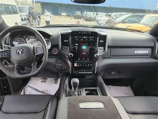 道奇霸王龙TRX在内饰部分进一步强化了其高性能版本的形象,中控台和座椅随处可见的TRX标识便是最好的例证。同时,作为道奇家族的旗舰车型,新车还配备了12英寸竖置中控屏幕,除了支持蓝牙、导航和车载Wi-Fi等常见功能,还支持Apple CarPlay和Android Auto手机映射