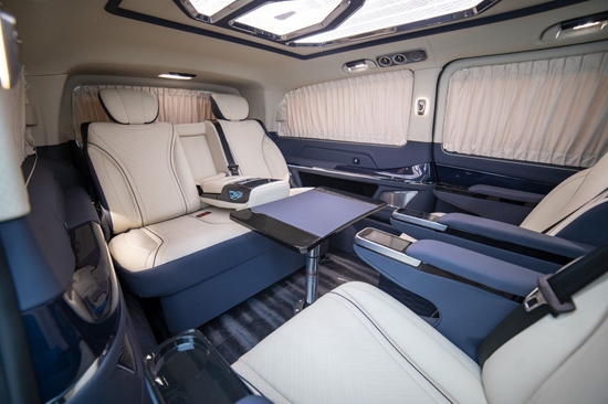 这款奔驰迈巴赫商务车七座地板的材质也进行了深层次升级,新型进口的静音减震轻量化材质,有效隔绝胎噪风噪,最大马力的行驶过程中,坐在舱内也能静谧安享,无震无噪的舒适体验感,让人感受到什么是真正的豪华!