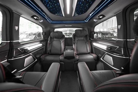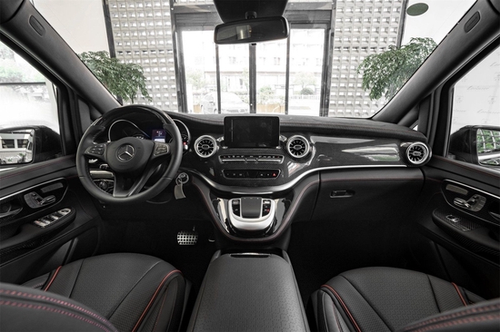 奔驰V260在内部装潢上也进行升级,车体头层小牛皮真皮包覆、Alcantara以及实木和碳纤维多种材质可供选择。