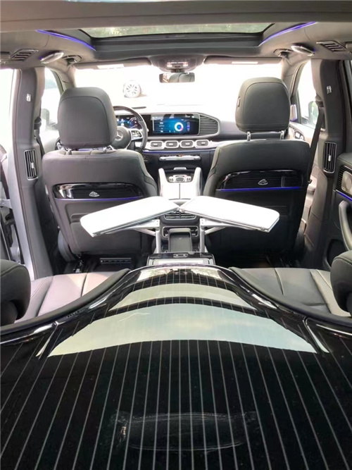 奔驰GLS (配置|询价)600迈巴赫新车提供四座和五座两种布局,其中四座车型第二排独立座椅相比普通版GLS更加靠后,并且带有巨大的腿拖,其后排座椅最大倾斜角度大43。度后排腿部空间最大达1.34米。中央由冰箱、控制台储物空间和手机无线充电台。