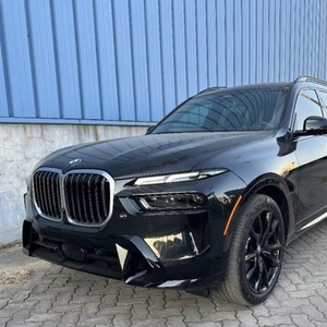 全新一代23款平行进口宝马X7 (配置|询价)依旧采用了大量宝马家族化设计元素,整体造型延续了此前概念车的设计。进气格栅相比宝马现款车型尺寸更大,两侧大灯也采用了开眼角设计,但造型更加狭长,搭配内部的日间行车灯,有着较强的科技感。 贵宾购车电话:17627885113 祝经理 (微信同电话)宝马X7侧面采用了与7系 (配置|询价)相同的“L型”镀铬装饰,一条贯穿车侧的腰线将尾灯也融入其中。