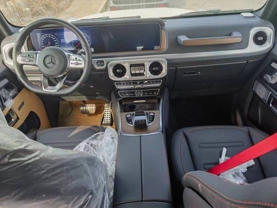 22款 奔驰G350D(柴油) 配置:20寸AMG轮毂+胎压监测、运动踏板、AMG套件、几何多光束大灯、环车影像、带AMG标志的运动卡钳、全尺寸备胎+不锈钢备胎罩、奔驰专属大天窗、电动折叠后视镜、前后行车雷达+主动泊车辅助、100L大油箱、多功能运动方向盘带触摸控制、超宽大屏显示、中文显示(多国语言菜单变换)三把差速锁、自适应照明、多制式可调节真皮电动座椅、特殊定制拼接线(红色安全带)、前后座椅加热、Burmester? 环绕声系统 、乌木顶、多溫区空调、黑钢琴漆木制式混合内饰、AMG专属定制脚垫、后备箱储物格栅+储物箱遮盖