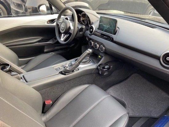 马自达mx5内饰装配了一台8英寸悬浮式液晶显示屏幕,配有三辐式多功能方向盘,多处加装了镀铬饰条。采用对称式设计,配有悬浮式液晶中控屏、三辐式多功能方向盘、一键启动等配置。配色选用了纯黑方案。此外,方向盘、空调出风口、挡把等多处加入了镀铬装饰