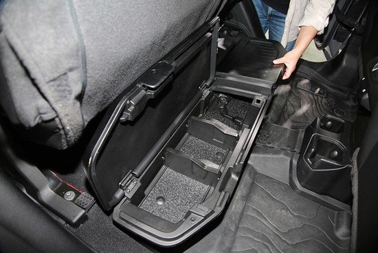 后排座椅具有非常强大的实用性,支持4/6比例放倒和坐垫抬升,座椅下方还有两个独立的带锁的储物盒,用来存放私人物品。
