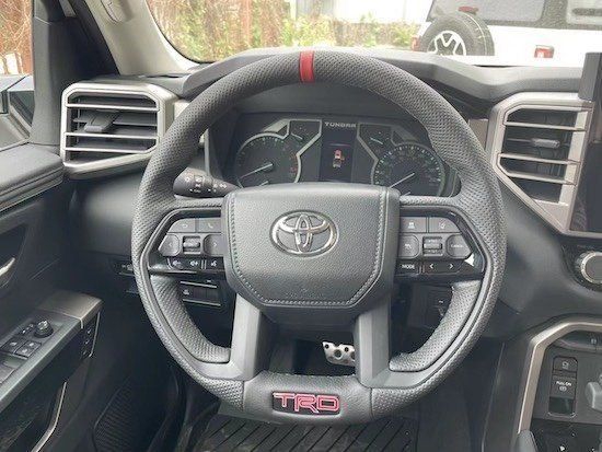 23款丰田坦途的内饰设计也采用了新设计风格,“硬”还是第一感受。无论是平直的线条还是灰白的用料配色,车内的风格都是非常偏向于越野,宽大的悬浮式液晶中控屏幕也是挺抢眼的,根据不同配置也将提供有8英寸以及14英寸的不同配置,就是这个感觉还是很像“大彩电”,只是放在这台车上会显得更协调一些,功能上也丰富了在线车联网以及CarPlay车机互联功能。