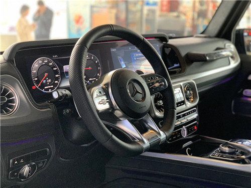 奔驰G63经过全新改款内饰豪华气派,卓越的品质和精致的工艺在车内体现得淋漓尽致,对细节的精益求精是内饰设计中的重要原则。车内采用深色调与桃木装饰,黑色真皮运动座椅非常舒适,方向盘以高档真皮包裹装饰,触感极其细腻。配有桃木装饰的操控台,稳重大气,同时提高了整体的质感。