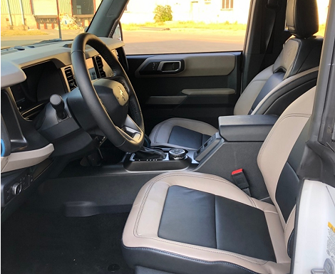 22款福特烈马Bronco车内采用硬朗的设计风格,中控台设计主次分明且有层次感,用料也厚实,多功能方向盘造型运动,中控屏幕采用内嵌式的设计增添了车内的时尚感,按键布局合理,档把设计精致,座椅宽大厚实,空间宽敞,实用性强。刘经理:17694965222《同微信》
