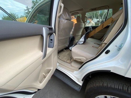 2022款国六进口丰田霸道4000GXR配置如下:外部特征: 265/55 R19 铝轮毂,150 升油箱,后挂带壳备胎,车身色电动后视镜,尾翼,一体式行李 架,天窗,LED 前雾灯,前后电眼, 内部特征: 三区自动空调,中控台,冰箱,皮质方向盘,织物座椅,9 英寸导航屏幕,6 音响,多功 能方向盘,苹果安卓系统,手动大灯调节,智能卡,无钥匙进入, 安全特征: 7 气囊,主动牵引系统,倒车影像,定速巡航,坡道辅助,托森中差速锁。