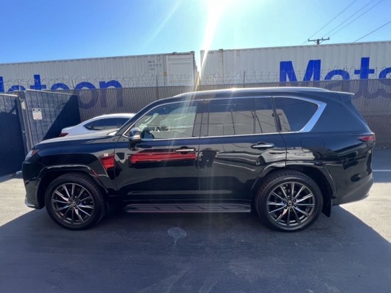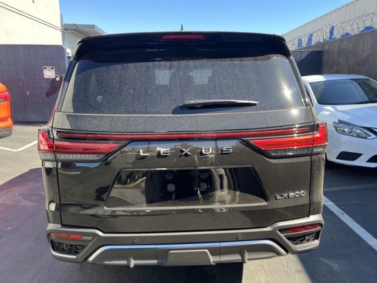 雷克萨斯lx (配置|询价)600外观前脸部分采用了七条幅的镀铬装饰,比老款提升一大截。两侧配LED大灯造型别致,点亮后的效果有点儿耐克标的样子。银色的金属LOGO位于前进气格栅上,使得整个前脸看起来年轻又大气。