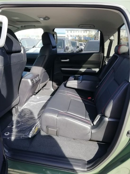 2022款丰田坦途中控区被银灰色的面板划分为驾驶区与乘坐区,在宽大的车身内排挡杆更为接驾驶员更便于操作。坦途内饰简洁大方依旧突出了实用特点,21款丰田坦途后排座椅非常舒适,椅背的倾斜度适中,腿部空间也很大,还增加了天窗、多功能方向盘、智能语音操作系统以及倒车影像,这些豪华配置使得坦途更具备轿车的舒适性。作为一款皮卡,坦途内饰的用料和做工明显有过于“豪放”之嫌,中控台大面积的硬塑料材质说明它还是一款实用性至上的车型。
