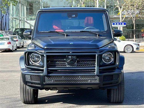 23款奔驰G500 (配置|询价)在外观上依旧延续经典的方盒子状风格,仍旧为熟悉的奔驰越野车家族式设计语言。尺寸不大的矩形进气格栅,配合显眼的品牌Logo和两侧圆形前大灯组,营造出较为浓厚的复古味道。凸起机盖和厚实前保险杠的使用,则为该车增添不少硬派力量感。