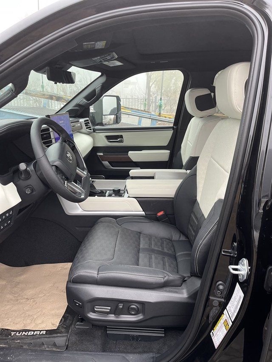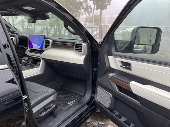 丰田坦途是丰田车系中最大型号的皮卡,前半个车身的外形和丰田红杉几乎一摸一样,整体轮廓明显具有美国式汽车特有的风格。丰田坦途TRD版皮卡的车头前脸造型上更加硬朗,粗壮的横幅格栅展现出极其坚实的力量感,宽大硬朗的车身,粗犷有力,凸显美国车的风范,前脸明显外张的挡泥板以及前突的坚固格栅尽现强悍风格。22款丰田坦途TRD天生有着一副蛮横的外表,虽身着富丽的外衣,却抹不掉它与生俱来的野性。车辆前脸气概磅礴的前大灯计划,联合侧面贯穿全车的腰线,倍显丰田坦途的澎湃动力和沉稳气质。外驭宽大旷达,内蕴敬服,兼具俊风范与贵族气质。丰田坦途皮卡大尺寸车头细节部份很好的放开展来,毫无滞滞泥泥之感,在享受奢华与安静的同时,你可以开着它在极其恶劣的道路上走得更远,闯得更深。