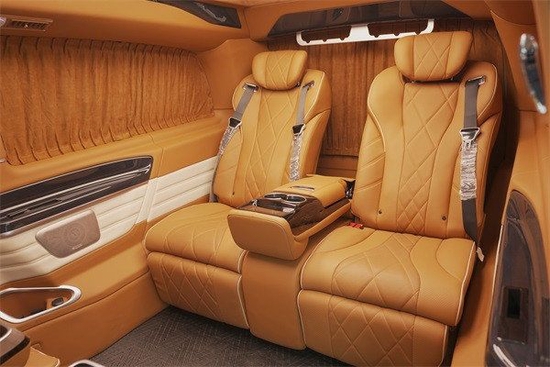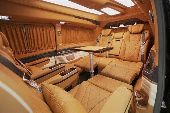 这款车比其他v260迈巴赫奔驰商务车七座更豪华的点在于它的三排,三排是独立式座椅设计,可七座、可六座,中间扶手台打下来后排就是和二排一样完全独立的两个座椅,而且三排也配备了多项电动调节、通风加热以及气动按摩等豪华功能,三排还配备豪华腿托,宾客坐在三排,也能感受到最具诚意的尊重和敬意,相比常规连排沙发坐,这款更适合重要场合下的商务接洽,能予以宾客最大的豪华与尊重。