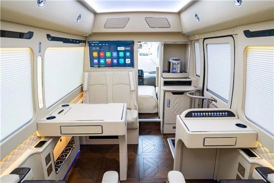 丰田考斯特改装12座能够装备高档的办公桌,豪华的首长席以及汇报席或者秘书席。在内饰的规划上丰田考斯特还增加了冰箱以及雨伞柜等装修,华通丰业丰田考斯特改装商务车选用防滑阻燃地毯,提高乘车途中的安全系数,保障人身安全。