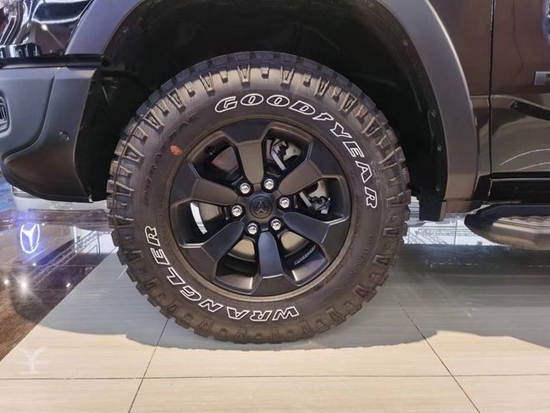 道奇叛逆者的外观非常的霸气,硕大的logo彰显着它强悍的性能,下方的钢制前冲砂护板和18寸的越野轮毂搭配原厂的越野轮胎处处都在提示着我们它是为了越野而生。