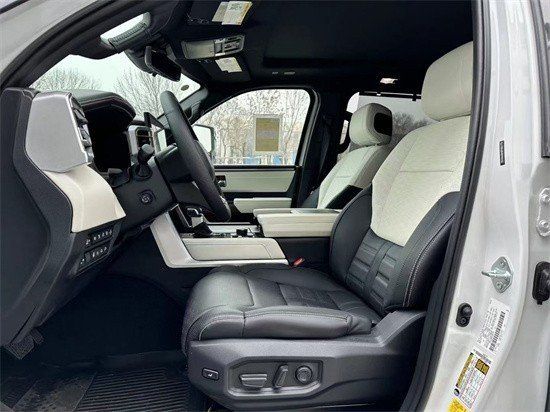 在配置方面,全新丰田红杉总共推出了5款车型,分别是SR5、Limited、Platinum、TRD Pro和Capstone,全系都标配了丰田Safety Sense 2.5技术套件、前排座椅加热、全景天窗以及360度全景摄像系统等配置。不过入门版SR5上配备的是8英寸中控屏,其余车型都采用了更大的14英寸中控屏;此外Limited车型上还增加了前排座椅通风、方向盘加热以及二、三排遮阳棚等功能;而Platinum车型在此基础上,还配备了第二排座椅加热和通风、14扬声器的立体声音响、HUD抬头显示系统以及雨量感应雨刷等配置。