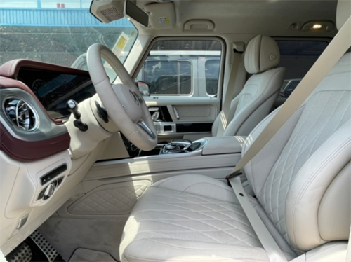 奔驰G400D在内饰方面豪华气息浓厚,仪表盘采用双炮筒式设计,再配合中间的液晶显示屏,粗犷之中又不失精致,宽广的空间, 让人瞬间有一种自由奔放的感觉, 大量的真皮设计以及一些恰到好处的点缀材质,尽显高贵奢华。 奔驰G400D柴油版宽敞开阔的车内空间就已经令人倍感自由奔放,特有的居高临下的座椅位置确保您时刻保持极佳的全方位视野。拥有奢华的内饰装饰,大量的真皮运用以及可通过选装的点缀材质,搭配上富含科技感的中控仪表设计,充满着一种藐视一切的自信感。