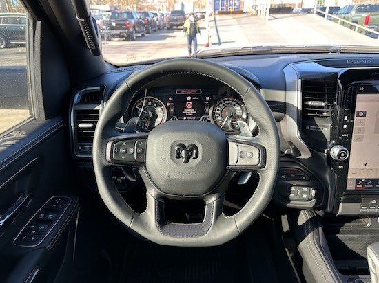 道奇公羊霸王龙门板上面多了真皮和实木的装饰。前排电动座椅 后排手动调节座椅(带扶手箱)前排座椅通风加热。真皮座椅加刺绣 主驾驶座椅记忆真木方向盘并带有加热功能哈曼卡顿音响2021款的长角号的中控部分:12寸大屏娱乐系统,新款长角号Logo仪表显示器,(4/8缸切换、紧急闭缸)中央扶手带有储物盒。中央扶手带有LOGO。