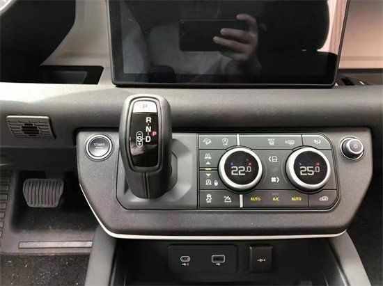 2023款路虎卫士的内饰设计变得不再简陋,中控台使用了涂层镁合金材质,进一步提升了内饰的耐用性,新车使用了全新的四辐式方向盘12.3英寸全液晶仪表、10英寸中控屏幕,空调旋钮带有液晶显示屏电子挡把位于中控屏下方,使用更加顺手。