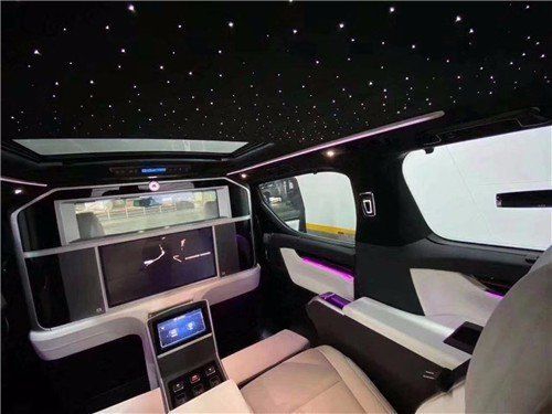 20款雷克萨斯LM300前后排隔板上方有一个石英钟,车顶为空调和天窗的控制按键,坐在后排的乘客自然不会亲自起身操作,所有的功能均可通过两个座椅之间的触屏完成设置。后排两个类似高级按摩椅一样的后座位于后车厢的中间位置,座椅内部配有独立的减震模块来提高舒适性,通风、按摩、加热这些功能都具备。这种规整的空间感是豪华轿车和豪华SUV都很难带来的。