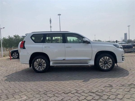 2023款丰田霸道4000采用大尺寸的车窗设计恰巧能使驾驶视野和乘坐视野大大加强, 整车凸显扁平化的车头设计,车身腰线从车头贯穿到车尾,车门下方采用银色装饰条突出整车档次感,车顶则是电动全景天窗,搭载银色行李架设计,并且增加鱼鳍式与尾翼凸显运动感,整车视觉上还是十分厚重的,给用户有一种安全感。