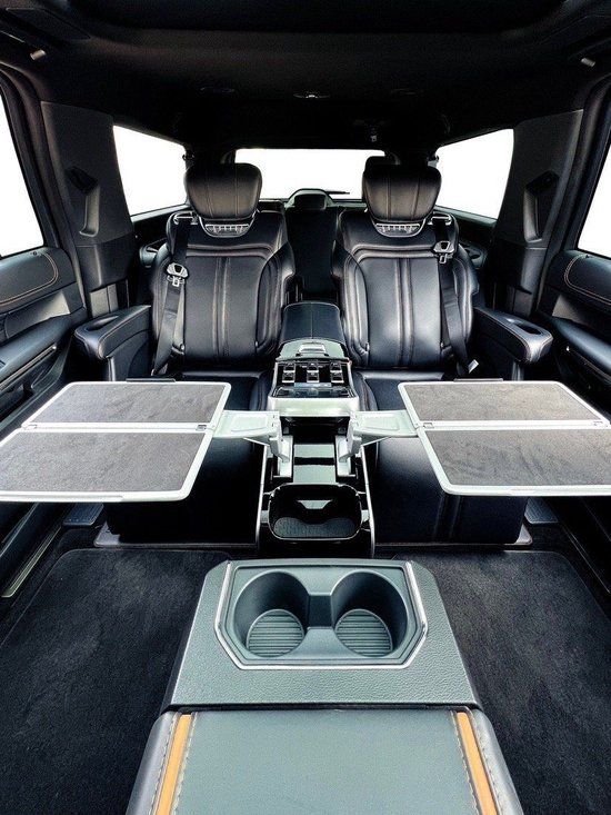 2️⃣二排座椅采用宽体航空座椅设计、宽大舒适、纳帕小牛皮包覆、配备通风、加热,气动按摩 、无线充电、电动升降头枕。小桌板,氛围灯,扶手功能:触摸屏控制、6升压缩机冰箱、无线充电+双USB充电、原车天窗控、座椅姿势3种记忆、一键折叠,轻松上下三排座