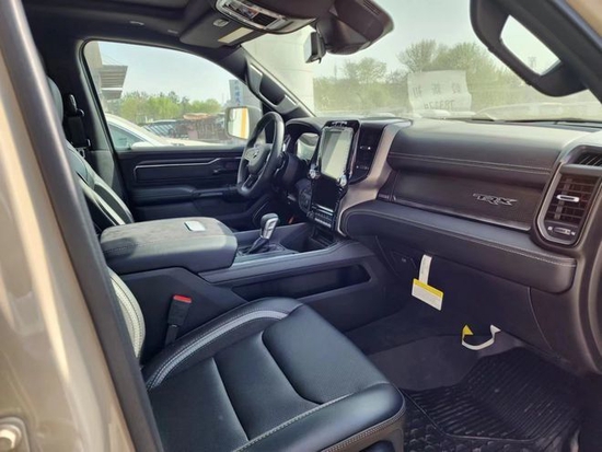 2023款道奇霸王龙TRX在内饰部分进一步强化了其高性能版本的形象,中控台和座椅随处可见的TRX标识便是最好的例证。同时,作为道奇家族的旗舰车型,新车还配备了12英寸竖置中控屏幕,除了支持蓝牙、导航和车载Wi-Fi等常见功能,还支持Apple CarPlay和Android Auto手机映射