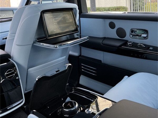 2024款劳斯莱斯幻影加长版后排才是重中之重,电动折叠板和后排影院系统被巧妙的隐藏在前排座椅的椅背后,只需轻触按钮,便可以自如收放桌板和影院系统,带来完美的剧院体验。