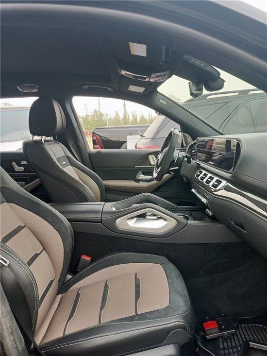 22款奔驰GLS63采用的是连体式大屏的设计,新车的中控台以及前侧地台上的面板装饰也很显豪华感。中控液晶显示屏上有AMG字样,启动车辆就能看到。车内采用全黑真皮材料包裹,触感犀利,乘坐感舒适。