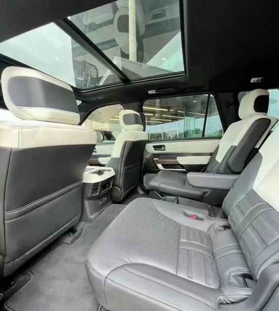2023款全新一代丰田红杉3.5T 推出了5款车型,分别是SR5、Limited、Platinum、TRD Pro和Capstone,购车热线:13388063216(微信同号)成经理 全系都标配了丰田Safety Sense 2.5技术套件、前排座椅加热、全景天窗以及360度全景摄像系统等配置。