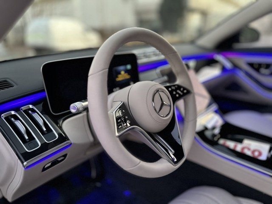 23款奔驰S500L的内饰设计就像一座移动的总统套房,相当的豪华。中控部分搭载了双屏设计,12.8英寸的中控大屏以及12.3英寸的悬浮式行车电脑屏,更多咨询请致电:苏经理187 2222 7779 (电话同微信)配上米色的内饰设计,颜值感很出众。此外,车内还使用了HUD投影显示以及高亮的钢琴烤漆面板,将科技感与时尚感结合得相当到位。