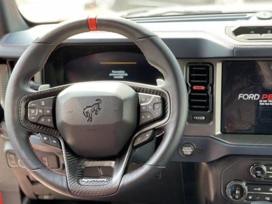 23款福特烈马Bronco3.0T四门Raptor猛禽车内采用硬朗的设计风格,中控台设计主次分明且有层次感用料也厚实。多功能方向盘造型运动,中控屏幕采用内嵌式的设计增添了车内的时尚感,按键布局合理档把设计精致座椅宽大厚实空间宽敞实用性强。