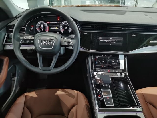 奥迪Q8进入车厢内部,会感觉奥迪Q8和全新A8 (配置|询价)的设计高度雷同。奥迪全新家族化设计,科技感十足的虚拟驾驶舱氛围,同样的三块大屏,横向贯穿的前排空调出风口。中控台采用大面积的真皮包覆,且向驾驶员一侧倾斜,形成以驾驶员为中心的驾驶舱。整个中控采用了全触屏来对车辆进行操控,没有一个实体按键,对技术要求极高,非常的高大上。