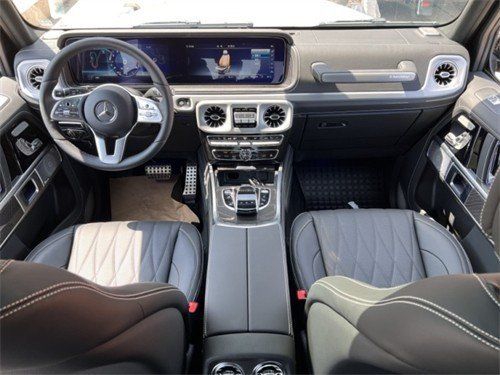 2023款奔驰G550的内饰豪华气派,卓越的品质和精致的工艺在车内体现得淋漓尽致,对细节的精益求精是内饰设计中的重要原则。车内采用深色调与桃木装饰,贵宾热线:15822617116 伊经理(同微信)黑色真皮运动座椅非常舒适,方向盘以高档真皮包裹装饰,触感极其细腻。