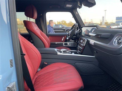 2023款奔驰G63豪华精致的真皮包覆提供了足够的舒适性和支撑性,通风和加热功能让乘客免受高温和寒冷的煎熬。中控台多处均采用碳纤维材料覆盖,带彩色TFT显示屏的AMG仪表盘、AMG主菜单和单独的挡位显示器以及采用白色照明的AMG门槛。名贵的选材及精湛的内装令人拍案叫绝。