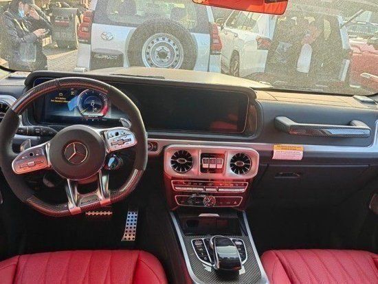 23款奔驰G63内饰方面,奔驰的设计绝对可以用惊艳来形容,无论是经典车型还是超豪华车型甚至是入门级的豪华车上,奔驰的内饰都会让你眼前一亮,当然了这也是奔驰的一个特色。所以这部全新的G63在内饰的表现上也是情理之中的,但是细节上还是有些小小的意外。这种感觉是打开车门的瞬间就能够感受到的。首先仪表和中控屏依旧是采用了同一款液晶屏显示,第一感觉就是科技感爆表。而其他方面例如方向盘,空调出风口,挡杆等等的设计充满设计感。