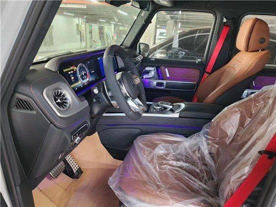 23款奔驰G63采用了奔驰最新的双屏幕式设计,全液晶仪表盘和中控台屏幕都达到12.3英寸,同时内饰质感和工艺都有了很大的进步,较之于现款车型,它的内饰发生了巨大的变化,融入了不少现款奔驰S级 (配置|询价)、E级的设计元素,从而变得更加豪华,而家族式的连屏设计则凸显了车内的科技感。23款奔驰G63后排有独立空调、充电接口、座椅配置了头枕,中央扶手里有杯架。后排座椅可以调节靠背角度,也带有加热功能,支持按比例放倒。