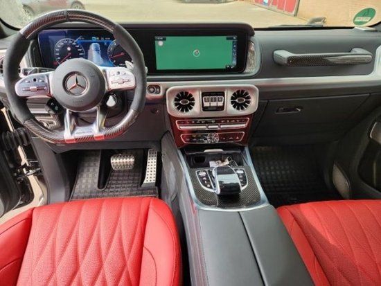 23款奔驰G63AMG换装了全新造型的平底式AMG运动 方向盘 ,其两侧配以打孔皮质包裹,下部镀铬装饰的造型也与新 G50 0明显不同,看上去十分战斗。此外,全液晶仪表盘+中控大屏的双12.3英寸屏幕设计在新车上也没有缺席,营造出了浓郁的科技感。