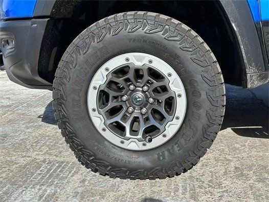 作为道奇公羊的原厂高性能版本,全新霸王龙皮卡不是改装车,它诞生的使命之一,就是打败猛禽,为此,它做得相当多的改进。首先,就是将一台地狱猫的6.2升V8发动机,塞进机舱里。这让它拥有了712匹的最大马力,881牛米的峰值扭矩,猛禽在它面前,直接变成了家雀。为了适应这台地狱猫同款“心脏”,设计上也要作出相应的改进,引擎盖上是隆起的通风口,大灯两侧也有进气口,都是为了满足这台大家伙的需求。