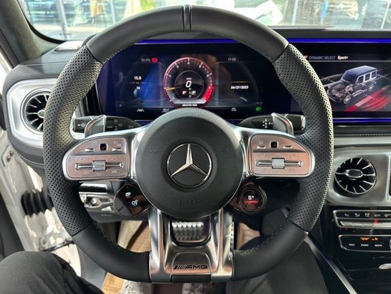 2023款奔驰G63内饰方面,奔驰的设计绝对可以用惊艳来形容,无论是经典车型还是超豪华车型甚至是入门级的豪华车上,奔驰的内饰都会让你眼前一亮,当然了这也是奔驰的一个特色。所以这部全新的G63在内饰的表现上也是情理之中的,但是细节上还是有些小小的意外。这种感觉是打开车门的瞬间就能够感受到的。首先仪表和中控屏依旧是采用了同一款液晶屏显示,第一感觉就是科技感爆表。而其他方面例如方向盘,空调出风口,挡杆等等的设计充满设计感。