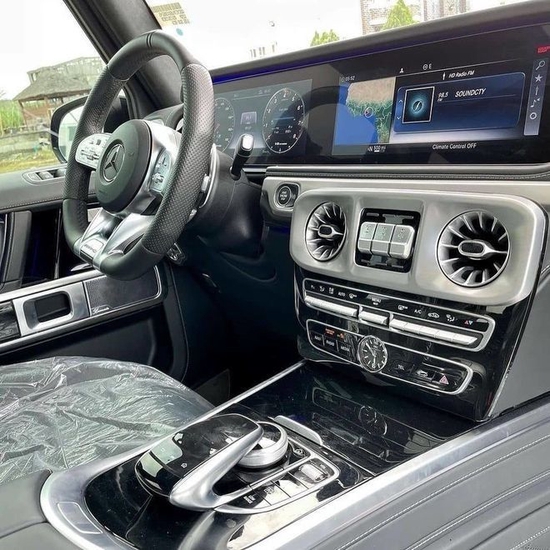 全新22款奔驰G63豪华精致的真皮包覆提供了足够的舒适性和支撑性,通风和加热功能让乘客免受高温和寒冷的煎熬。中控台多处均采用碳纤维材料覆盖,带彩色TFT显示屏的AMG仪表盘、AMG主菜单和单独的挡位显示器以及采用白色照明的AMG门槛。名贵的选材及精湛的内装令人拍案叫绝。