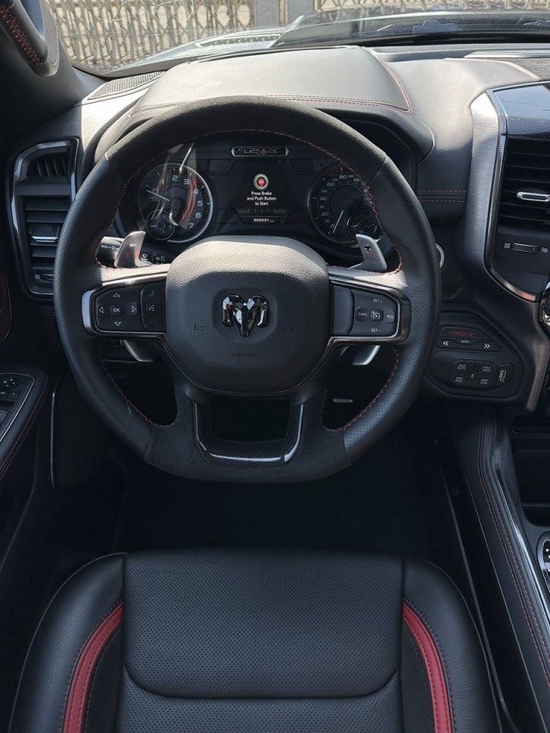 公羊1500 22款 6.2 TRX霸王龙 2级包 喷砂版包内饰采用了家族式设计,整体看上去也非常硬气具有强烈的美式风格,搭配多功能方向盘和大尺寸液晶竖屏并且做工精细。无论是外观还是内饰设计得都非常成功,强悍的外观搭载强劲的动力可以说是当之无愧的越野王者车型。
