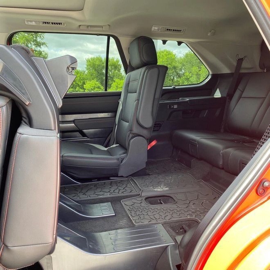 细节方面:丰田四驱铂金版红杉内部空间采用了符合人体工学的设计理念同时还应用了高品质的内装材质,使得红杉在任何路况下都能所向披靡,英勇无比