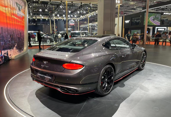这台宾利欧陆 (配置|询价)GT S为2023上海车展专属定制。外观方面,车身采用夺目的磁力灰金属外漆,配以22英寸10辐亮黑加镀铬双色运动型轮毂,并在很多细节出进行了黑化处理,包括两侧标志性的大灯组的外延部分,让整个运动化的车头更显气势。