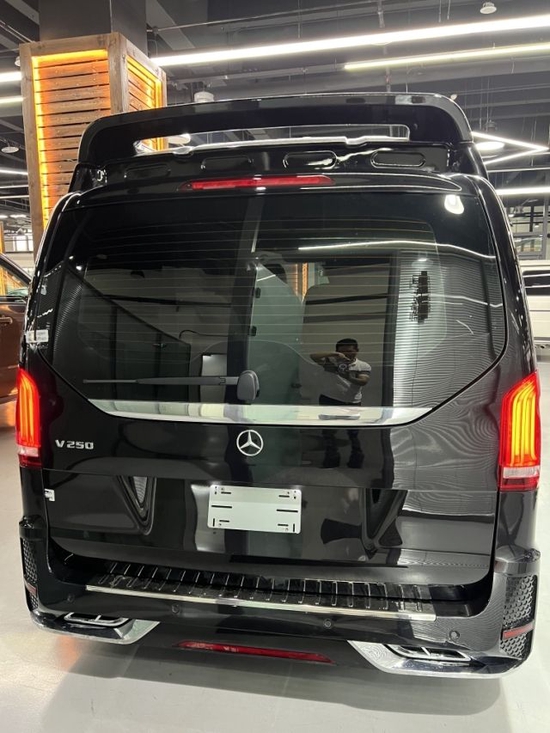 新改装奔驰V250的外观精致稳重,车前脸设计偏向SUV风格,简练大气。家族化设计的LED大灯非常漂亮,尖锐的轮廓视觉效果颇为犀利。奔驰V250房车的头灯总共由34颗LED光源组成,光带式日行灯点亮后煞是好看。