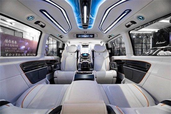 23款款进口奔驰V250商务车是一种低沉具有浑厚力量感的柔,它营造出整车内饰的寂静气氛,同时使用具有闪光感的金丝线穿插在浅色内饰中,使奔驰V250改装活跃了气氛,增添了些许生动,同时星空顶造型的加入,使得整个韵味涌现明朗与安详。