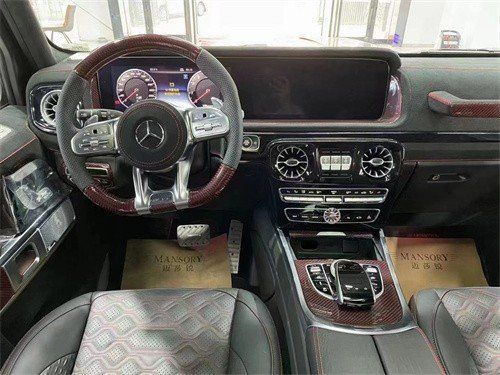 迈莎锐独家代理 现接受预定:Mansory迈莎锐 G63 (配置|询价),国六排放。颜色:黑红,内饰:黑红。主要配置:4.0t双涡轮增压V8发动机,功率500kw,680马力,扭矩1000N.m,最高车速258KM/H。全时四驱,9速自动变速箱。外观:Mansory迈莎锐专属车标及车身标识,发动机盖进气口,不可视碳纤轮眉,红线碳纤空气动力学组件,格栅,门把手,分流器,尾窗排气孔,防擦条等世界顶级碳纤维材料车身加持,23寸专属运动轮毂。内饰:红黑双色,意大利及德国进口顶级皮料与碳纤维元素完美结合,中央扶手增加天然鳄鱼皮包裹,双侧4排气筒带激进声浪等。价格:488万。