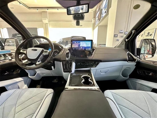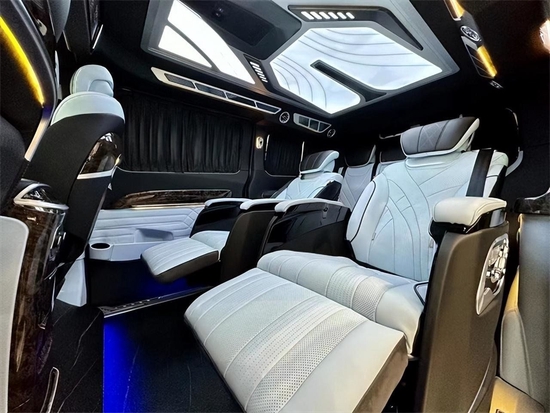 驾驶舱采用NAPPA真皮的深层包覆,体现了wowsen沃森威尔的细节、做工和质量,营造出一种高级的内舱氛围。NAPPA头层牛皮+碳纤维双拼接,仪表板采用法国双缝线设计。中央扶手配有制冷冰箱,支持零下12度至10度的温度调节。夏天可以随时喝冷饮,有些食物可以暂时冷藏。都是私人双层窗帘。视频和音频系统VVCAR9。声道立体环绕声,营造身临其境的视听环境。