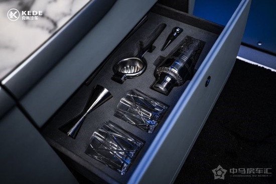 翔翼定制5G网络智能在线系统、娱乐影音、直播唱K、远程视频会议多模式享受。在娱乐屏下还有进口翻转吧台酒柜,隐藏式电动酒樽、隐藏式调酒设备、以及隐藏式电动翻转雨伞。