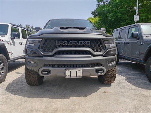 2023款道奇霸王龙传承了道奇Ram 家族高大威猛的造型设计,同时细节部分融入了更多高性能元素,包括经过黑化处理的前格栅,引擎盖两侧的黑色进气口,以及为了容纳巨大的机械增压器而设计的通风口,前倾式车头,相较中规中矩的家族设计无疑多了几分对路面的侵袭感。车内氛围堪称豪华,绝对可以媲美高级轿车。眼神中没有透露出一丝的活泼神韵,唯一展现出来的只有凶狠。前杠是铁质前杠带拖钩,散发这金属气息,沉稳大气。